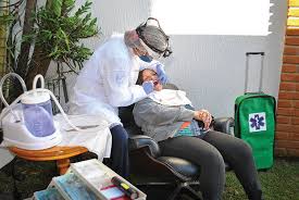 Atendimento odontológico domiciliar com equipamentos portáteis e profissionais qualificados.