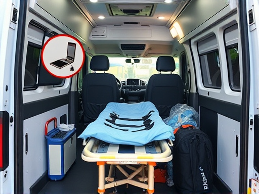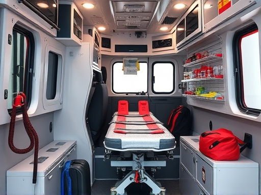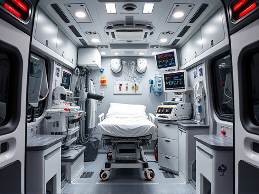 Ambulância de Suporte Básico de Vida equipada com materiais essenciais para primeiros socorros e transporte seguro de pacientes.